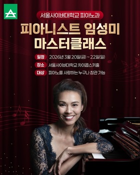 서울사이버대학교 피아노과는 오는 20~22일 사흘간 교내 차이콥스키홀에서 피아니스트 임성미의 마스터클래스를 진행한다고 19일 밝혔다.이번 마스터클래스는 피아노 음악을 사랑하는 누구나 참관할 수 있다.임성미 피아니스트 ...