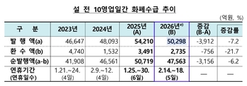 한국은행이 설을 앞두고 10영업일(2월 2일~13일) 동안 시중에 화폐 4조8000억원을 공급했다고 13일 밝혔다. 이는 지난해 같은 기간에 비해 약 3156억원(6.2%) 감소한 규모다.이 기간 한은은 5조298억 ...