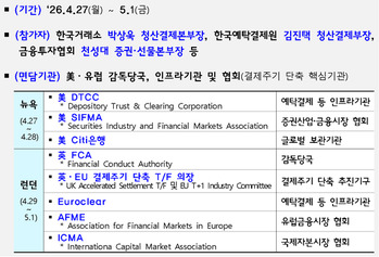 이재명 대통령이 주식 결제 지연 문제를 직접 언급하며 제도 개선을 압박한 가운데, 한국거래소 등 증권 유관기관이 결제주기 단축을 위한 해외 현지 점검에 나선다. 한국거래소, 한국예탁결제원, 금융투자협회는 오 ...