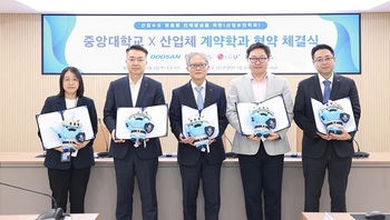 중앙대학교가 지난 2일 서울캠퍼스 비전홀에서 ㈜두산 디지털이노베이션BU, LG CNS, ㈜엘지유플러스, 엘아이지디펜스앤에어로스페이스㈜ 등 4개 산업체와 계약정원 설치·운영을 위한 협약을 맺었다고 6일 밝혔다.계약 정 ...