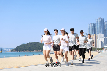부산 해운대 파라다이스 호텔 부산이 2일 프리미엄 퍼포먼스 브랜드 ‘뷰오리(VUORI)’와 협업해 소셜 웰니스 프로그램 ‘호텔 부산 X 선라이즈 바이탈리티 러닝 이벤트’를 진행했다.이날 이벤트 참가자들이 파라다이스 ...