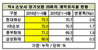 올 들어 주요 손해보험사의 2년 이상 계약유지율이 작년보다 높아진 것으로 나타났다. 유지율이 높을수록 보험 계약의 완전판매가 이뤄진 것으로 볼 수 있다. 11일 보험업계에 따르면 자산규모 빅4 손해보험사의 올해 9개월 누적 25회차 계약유지율은 평균 71.4%를 기록했