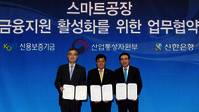 신한은행이 스마트공장 사업 활성화를 위해 발 벗고 나섰다.21일 신한은행은 협약보증대출을 지원하는 '스마트공장 금융지원 활성화를 위한 업무협약'을 체결했다고 밝혔다.신한은행은 산업통상자원부 및 신용보증기금과 손잡고 스마트공장 사업 참여 기업을 지원한다.이번 업무협약을