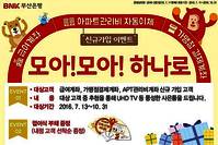 부산은행이 시원한 여름나기를 위해 다양한 이벤트를 선사한다.13일 부산은행은 신규 가입고객을 대상으로 '모아!모아! 하나로' 사은 이벤트 진행한다고 밝혔다.이벤트 대상고객은 급여계좌와 가맹점 결제계좌, 아파트관리비 자동이체 신규 가입자다.부산은행은 10월말까지 총 23