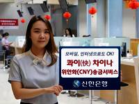 신한은행 원곡동외환센터에서만 시행됐던 ‘콰이 차이나 위안화 송금서비스’ 15일부터 전국 영업점으로 확대된다.‘콰이 차이나 위안화 송금서비스’는 제휴기관인 중국은행으로부터 매일 1회 고시하는 고정환율을 제공받아 수취인이 받을 위안화 금액을 확정해 위안화로 직접 송금해줘