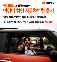 현대해상이 업계 최초로 어린 자녀(만 6세 이하)가 있는 고객의 자동차 보험료를 7% 할인해 주는 새로운 개념의 자동차보험 판매해 업계에 이목을 끌고 있다. 가입대상은 다음 달 15일 이후 책임개시 되는 계약이다.이 상품은 현대해상이 자사의 어린이CI보험과