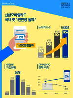 신한카드가 업계 최초로 모바일카드 누적 발급매수 1000만매를 돌파했다.14일 카드업계에 따르면 신한카드는 지난 12일 기준 모바일카드 누적 발급이 총 1053만매를 기록했다. 신한카드는 SK텔레콤, 비자코리아와 함께 유심모바일카드를 2007년 출시했고 이를 바탕으로