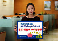 농협은행은 5일 중금리대출상품인 ‘NH EQ론’이 출시 3개월 만에 누적 규모로 100억원을 돌파했다고 밝혔다.NH EQ론은 농협은행과 NH농협캐피탈 간 협약상품으로 5~7등급인 중신용자들에게 1금융권 대출창구 문턱을 낮춘 게 특징이다.특히 금리의 경우 5~9%대로 재