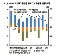 대우조선해양 사태를 계기로 회사채 시장이 급격히 얼어붙은 것으로 나타났다.3일 한국은행과 예탁결제원에 따르면 회사채 발행 규모에서 만기도래분을 뺀 순발행 규모를 보면 우량등급이 작년 1분기 3조원, 2분기 3조6000억원에서 3분기엔 8000억원으로 급격히 줄었다.특히