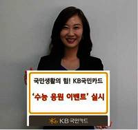 KB국민카드(사장 김덕수)가 2016학년도 대학수학능력시험을 앞두고 장학금 지원,학원비 캐시백, 뮤지컬 공연 초대 등 수능 수험생을 위한 ‘수능 응원 이벤트’를 펼친다.11월 2일부터 11월 30일까지 KB국민카드(KB국민 기업카드, KB국민 선불카드 제외)로 50만원