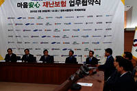 국민안전처는 삼성화재·손해보험협회 등 보험관계 기관과 '마음안심 재난보험' 업무협약을 체결하고 사회안전망 확보에 매진하겠다고 28일 밝혔다. 최근 △의정부 아파트 화재 △강화 캠핑장 사고 △담양 M펜션 화재사고 등 보험 미가입 시설의 재난이 발생했을 때&nbs