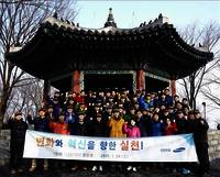 삼성화재는 24일 안민수 사장 등 주요 경영진과 신임 부서장 등이 참석한 가운데 서울 남산에서 '소통 산행'을 했다. 이날 삼성화재 임직원 66명은 각자 산행거리 1㎞당 1만원씩 모아 중구 등대지역아동센터 교육기금으로 500만원을 기부했다.
