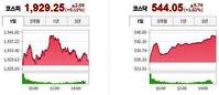코스피지수가 나흘 만에 반등에 성공하면서 상승 마감했다. 전날 3% 넘게 폭락했던 코스닥지수의 반등폭도 컸다.14일 코스피지수는 전거래일대비 2.04포인트(0.11%) 오른 1929.25에, 코스닥지수는 9.74포인트(1.83%) 오른 544.05에 장을 마감했다.간밤