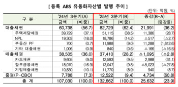 MBS·PF 유동화 급증 … 3분기 등록 ABS 13.3조 발행, 24% ↑