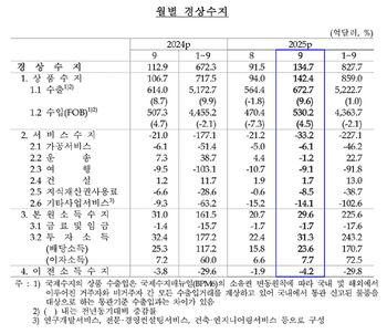 9월 경상수지 134.7억 달러 … 역대 2위, 월간 최대 흑자