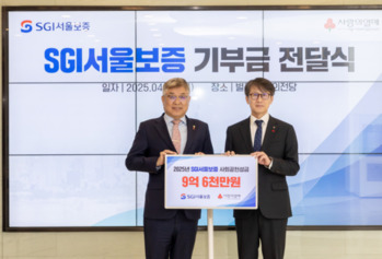 SGI서울보증이 서울 사회복지공동모금회에 2025년 연간 기부금 9억6000만원을 전달했다고 3일 밝혔다.이번 기부금은 의료·교육·환경·지역사회 분야를 위한 후원금 8억6000만원과, 영남지역 산불 피해 지역에 대한 긴급 후원금 1억원으로 구성됐다.연간 기부금은 저소득