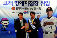 김시진 롯데자이언츠 야구단 감독이 부산은행 사직운동장지점 명예지점장으로 위촉됐다. BS금융그룹 부산은행은 27일 사직운동장지점에서 BS금융그룹 성세환 회장과 김시진 감독 등이 참석한 가운데 명예지점장 위촉 행사를 갖고 위촉패를 전달했다고 밝혔다.김