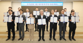 우리금융그룹 임종룡 회장이 전국의 그룹사 현장 내부통제 전담인력을 한자리에 모아 그룹 내부통제 현주소를 진단하며 철통같은 내부통제에 힘써달라고 호소했다.우리금융은 27일 본사 시너지홀에서 임종룡 회장을 비롯해 그룹사 내부통제 전담인력 등 약 100여 명이 참석한 가운데