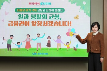 한국씨티은행은 저출생 위기를 극복하고 일과 가정의 양립 문화 확산을 위한 ‘저출생 위기 극복 금융권 릴레이 챌린지’에 유명순 은행장이 동참한다고 20일 밝혔다. 저출생 위기 극복 릴레이 챌린지는 가족 친화적 기업문화를 확산시키고 출산과 육아에 대한 긍정적인 사