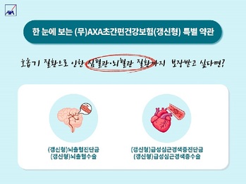 AXA손해보험이 '(무)AXA초간편건강보험(갱신형)'을 출시했다고 13일 밝혔다.이 상품은 40세부터 75세까지 가입할 수 있다. 또 심혈관 및 뇌혈관 질환을 보장해 독감 등 호흡기 질환으로 인한 합병증 위험을 대비할 수 있도록 설계됐다.가입 시 뇌출혈 및 급성심근경색