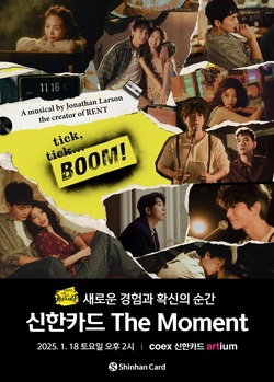 신한카드가 새해 첫 ‘신한카드 The Moment’ 행사로 뮤지컬 틱틱붐 1+1 예매 이벤트를 진행한다고 10일 밝혔다.뮤지컬 틱틱붐은 뮤지컬 렌트로 유명한 작곡가 조나단 라슨의 자전적 작품으로2001년 브로드웨이 초연 이후 꾸준히 사랑받아온 작품이다. 이번 공연은 서
