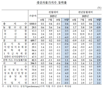9월 생산자물가 0.4% 올라 … 1년 만에 상승폭 최대