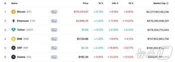 미중 무역전쟁에 따른 충격이 이어지면서 암호화폐가 급락세를 이어가고 있다. 12일 오전 10시 현재 글로벌 코인 시황 중계사이트인 코인마켓캡에 따르면 비트코인은 24시간 전보다 2.71% 하락한 10만9855달러를 기록했다. 시총 2위 이더리움은 3.