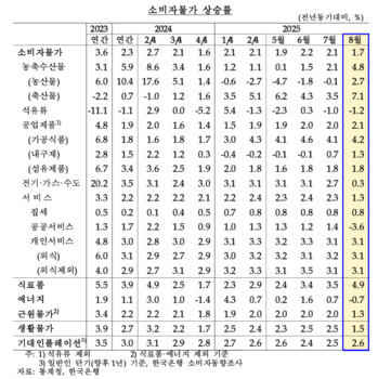 8월 물가 1.7% … 통신요금 할인에 일시 하락
