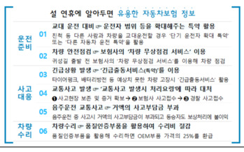 설 연휴 귀성‧귀경길 운전 시 운전자 교대가 필요하다면 운전자 범위를 늘려주는 자동차보험 관련 특약에 미리 가입해야 한다.자동차보험의 '긴급출동서비스' 특약에 가입돼 있으면 운전 중 타이어 펑크나 배터리 방전 등 긴급상황 발생 시 유용하게 활용할 수 있다. 금