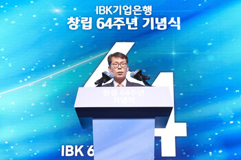 IBK기업은행은 1일 서울 중구 본점에서 임직원 300여명이 참석한 가운데 창립 64주년 기념식을 개최했다.이날 김성태 행장은 기념사에서 “고객을 향한 진실되고 선한 마음으로 고객의 가치를 높이는 혁신적인 서비스를 제공하는 것만이 불확실성의 위기 속에서도 기업은행을 성