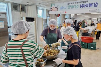 푸본현대생명은 대한적십자사 서울지사 서부봉사관(양천구 소재)에서 지역사회 소외 이웃들의 건강한 여름나기를 지원하기 위해 ‘삼계탕 나눔’ 봉사활동을 펼쳤다고 28일 밝혔다. 이번 봉사활동은 푸본현대생명 임직원으로 구성된 자원봉사자가 직접 음식을 만들어 준비한 삼