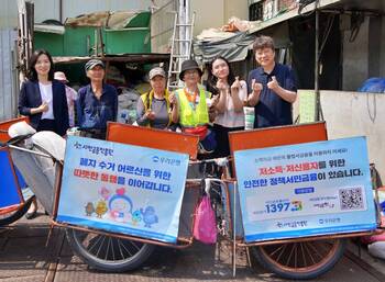 우리은행이 서민금융진흥원(이하‘서금원’), 협동조합 끌림과 함께 폐지수거 어르신을 위한 자활지원 사업에 참여한다고 22일 밝혔다.우리은행은 폐지수거 어르신들의 안전과 건강을 위해 경량 리어카를 무상 제공하고, △형광 안전조끼 △쿨토시 △목장갑 등 안전용품도 함께 후원한