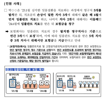 금융감독원은 치아보험에 가입한 소비자들이 보험금 청구 시 불이익을 받지 않도록 주요 분쟁 사례를 바탕으로 한 소비자 유의사항을 24일 발표했다. 금감원은 임플란트 등 고액 치료가 보편화되면서 치아보험 수요가 꾸준히 증가하고 있으나, 상품별로 보장 범