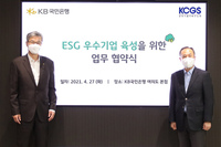 KB국민은행은 27일 한국기업지배구조원과 ‘ESG(환경‧사회‧지배구조)우수기업 육성을 위한 업무협약’을 체결했다고 밝혔다.이번 협약을 통해 양 기관은 ESG 우수기업 선정을 위한 환경, 사회, 지배구조 각 영역별 평가 지표를 수립할 예정이다. 국민은행은 새로운 평가 지