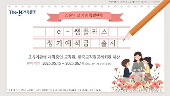 더케이저축은행이 스승의 날을 맞아 교직원을 대상으로 우대금리를 제공하는 '2025 e-쌤플러스 정기적금'과 '2025 e-쌤플러스 정기예금' 특판 상품을 출시했다고 15일 밝혔다.이번 특판 상품은 온라인 전용상품으로 인터넷뱅킹 또는 모바일 애플리케이션 'SB톡톡플러스'