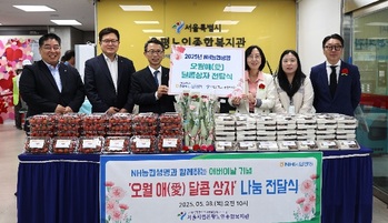 NH농협생명이 전날 서울 은평노인종합복지관에서 어버이날을 맞아 '오월애(愛) 달콤상자' 전달식을 진행했다고 9일 밝혔다.지역 내 독거 어르신 400명에게 방울토마토, 백설기 등을 담은 간식꾸러미와 카네이션을 전달하며 따뜻한 마음을 전했다.카네이션은 농협생명 임직원이 직