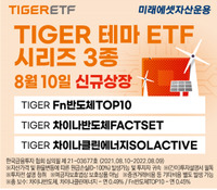 미래에셋자산운용은 신규 상장 TIGER ETF 거래 고객을 대상으로 이벤트를 진행한다고 10일 밝혔다. 신규 상장 종목은 TIGER Fn반도체TOP10 ETF, TIGER 차이나반도체FACTSET ETF, TIGER 차이나클린에너지SOLACTIVE(솔랙티브)