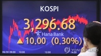 코스피, 개인 순매수에 소폭 상승…3300선 회복은 실패