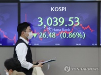 코스피, 외인·기관 매도에 0.86% 하락…3039.53 마감