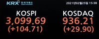 코스피, 외인·기관 매수에 3.5% 급등…3099.69 마감