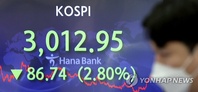 코스피, 외인·기관 매도에 2.8% 하락…3012.95 마감