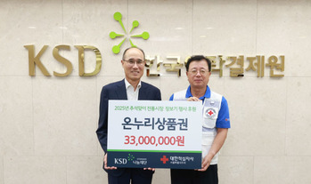 예탁결제원 KSD나눔재단은 19일 서울사옥에서 취약계층 추석맞이 전통시장 장보기 행사 후원금 3300만원을 대한적십자사 서울특별시지사에 전달했다고 22일 밝혔다.금번 후원은 서울지역 홀몸어르신, 조손가정 등 사회적 배려계층 220가구에게 추석맞이 장보기 비용을 지원(가