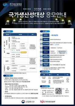 산업통상자원부와 한국생산성본부는 ‘2026년 국가생산성대상 정부포상’ 후보자 공모를 4월 9일까지 진행한다고 밝혔다. 포상은 생산성 향상을 선도한 기업·법인, 단체와 개인 유공자를 발굴해 시상함으로써 산업 전반의 생산성 혁신 사례를 확산하고 국가 경제 발전을 뒷받침하는