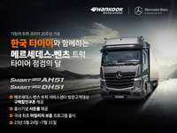 한국타이어앤테크놀로지(한국타이어)가 오는 7월 31일까지 벤츠 트럭 고객을 대상으로 ‘한국타이어와 함께하는 벤츠 트럭 20주년’ 특별 프로모션을 진행한다고 26일 밝혔다.한국타이어는 벤츠 트럭 국내 출시 20주년을 맞아 벤츠 상용차 고객들에게 자사 글로벌 최상위 트럭·