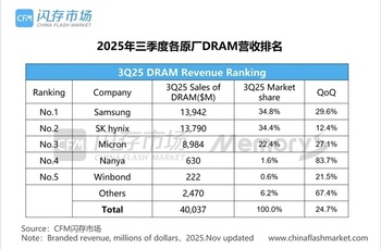삼성전자가 올해 3분기 글로벌 D램 시장에서 매출 기준 선두 자리를 다시 차지한 것으로 분석됐다. 시장조사기관 차이나플래시마켓(CFM)은 19일 발표한 보고서에서 삼성전자의 3분기 D램 매출이 전 분기 대비 29.6% 늘어난 139억4200만 달러에 달했다고