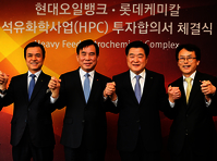 현대오일뱅크와 롯데케미칼이 2조7000억 원 규모 초대형 석유화학 신사업을 공동으로 추진한다.양 사는 9일 서울 소공동 롯데호텔에서 올레핀과 폴리올레핀을 생산하는 HPC(Heavy Feed Petrochemical Complex) 신설을 위해