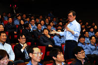 한국수력원자력의 새 사장으로 정재훈 전 한국산업기술진흥원장이 5일 취임했다. 정 사장은 이날 취임식에서 '노타이 셔츠'차림에 무선마이크를 착용하고 등장했다. 취임식 역시 일방적인 메시지 전달이 아닌 토크콘서트 형식으로 이뤄졌다. 정 사장은 "에너지