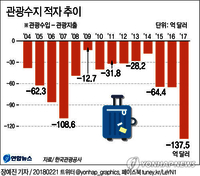 지난해 관광수지 적자가 14조7000억원으로 사상 최대를 기록했다. 고고도미사일방어체계(사드·THAAD) 한반도 배치 여파로 중국 관광객이 줄어든 데다 우리나라 국민의 해외여행이 대폭 늘어났기 때문으로 분석된다. 21일 한국관광공사에 따르면 지난해 관광수입은 133억2