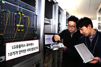 LG유플러스가 기가 인터넷보다 10배 빠른 10기가 광 전송 시대를 연다.LG유플러스는 국내 중소 네트워크 장비 업체 유비쿼스와 손잡고 기존 기가 인터넷 보다 10배 빠른 홈 10기가(Gbps) 인터넷 서비스 솔루션을 공동 개발, 내부 기술 시연에 성공했다고