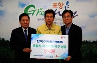 한국수력원자력(주)이 21일 지진으로 큰 피해를 입은 포항시에 5억원의 성금을 전달했다. 지난 15일 포항에 역대 2번째 규모인 강도 5.4의 지진이 발생해 건물 외벽이 무너지는 등 피해를 입었다. 이관섭 한수원 사장은 이날 포항시청을 방문해 이강덕